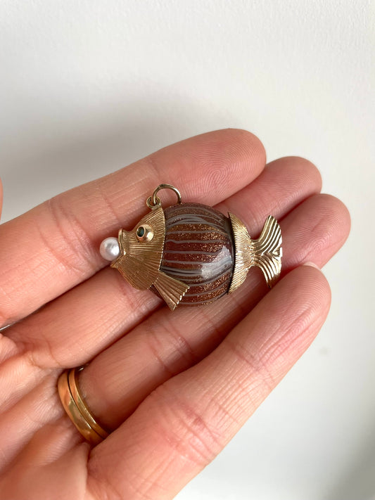 Rare Vintage 9ct Gold and Murano Glass Fish Pendant